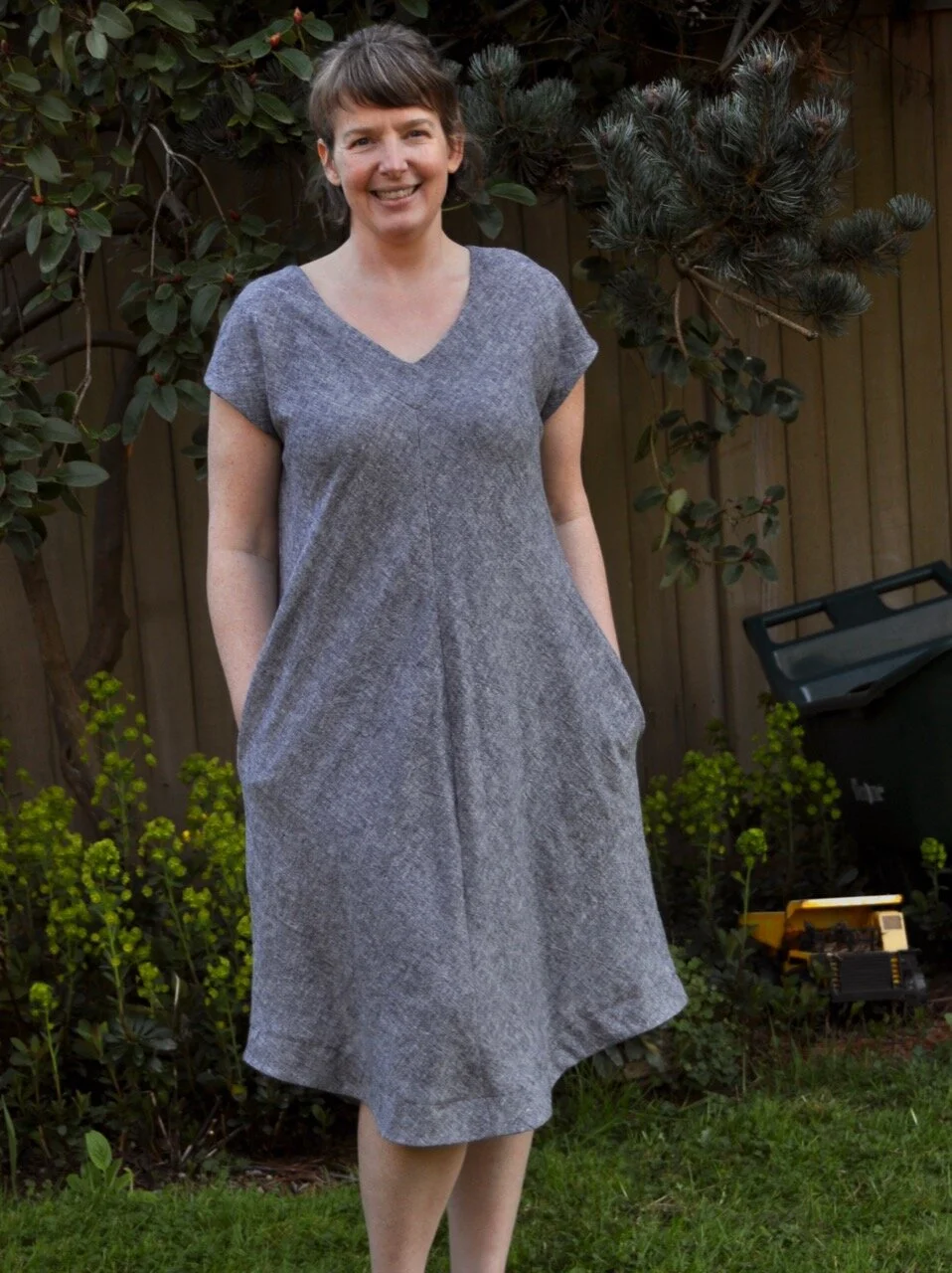 Tester Michelle’s Merchant & Mills grey linen dress is absolutely stunning (above and below).